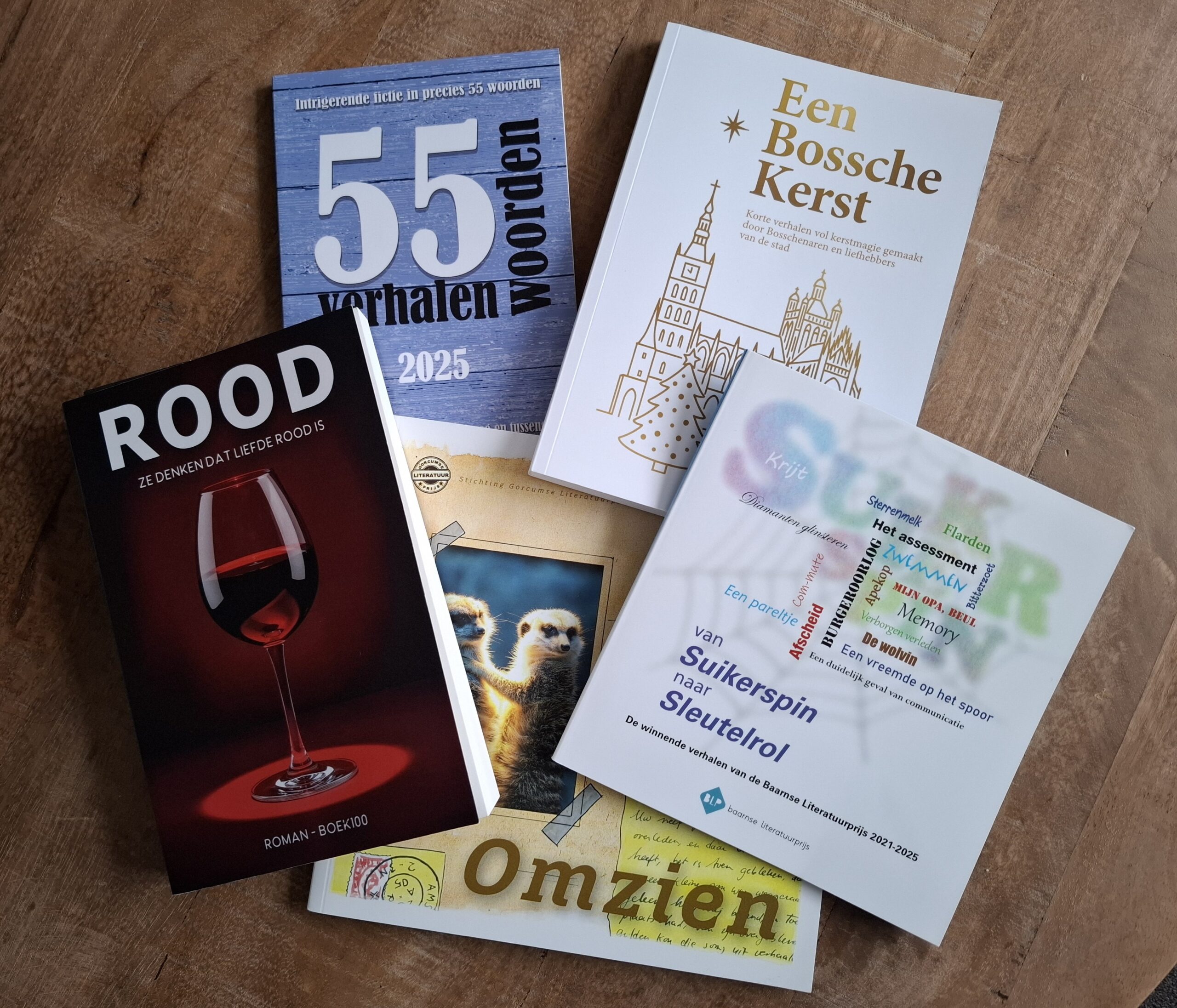 Vier van mijn korte verhalen van dit jaar verschenen in bundels. En er verscheen nog een verzamelbundel van de Baarnse Literatuurprijs van de afgelopen 5 jaar. Dus dat brengt de publicaties van dit jaar op 5: