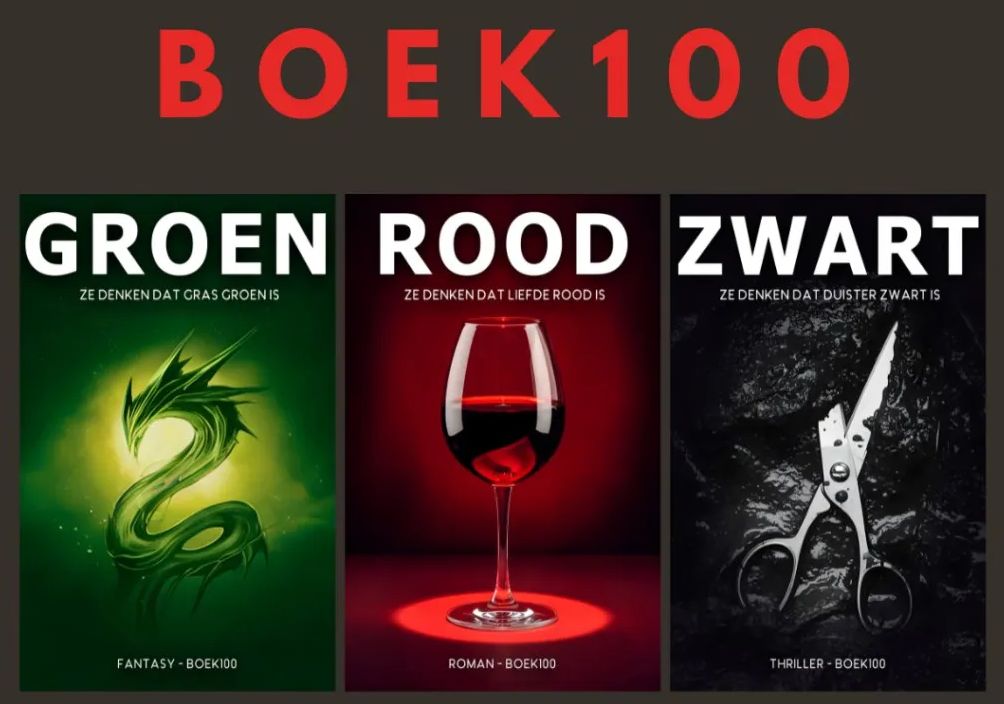 Godijn Publishing bestaat 10 jaar! Om dat te vieren pakken ze uit met een groot verhalen-project: Boek100. Op 31 mei 2025 werden maar liefst 100 verhalen tegelijk gelanceerd. Verdeeld over 3 bundels met elk een eigen thema. Groen: fantasy, Rood: roman, Zwart: thriller.